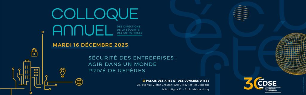 ✨Ouverture de la billetterie – L’édition 2025 du colloque annuel des directions de la sécurité des entreprises se tiendra le mardi 16 décembre 2025, au Palais des arts et des congrès d’Issy-les-Moulineaux.